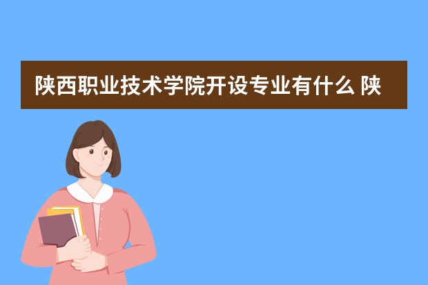 陕西职业技术学院开设的专业有报关与国际货运、应用化工技术、环境艺术设计、园林工程技术、建筑工程技术、建筑设备工程技术、建筑工程管理、工程造价、工程监理、房地产经营与估价、汽车检测与维修技术、汽车技术服务与营销、计算机应用技术、计算机网络技术、计算机信息管理、软件技术、图形图像制作、电子信息工程技术、电子组装技术与设备、资源环境与城市管理、金融保险、证券投资与管理、投资与理财、会计、会计电算化、国际经济与贸易、市场营销、电子商务、商务管理、物流管理、旅游管理、酒店管理、人力资源管理、应用英语、旅游英语、文秘、音乐教育、学前教育、电脑艺术设计、装潢艺术设计、动漫制作技术、保险实务。